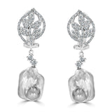 18 karat white gold earrings featuring Tahitian cultured pearls and 108 white diamonds totalling 1.01 carat.