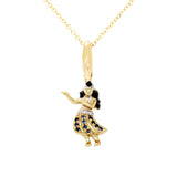 Meet Maili, the Polynesian princess. Maili is wearing a top made of hollowed-out halves of coconuts and a dyed hibiscus bark fibre skirt. Over the skirt there is a string belt leaves, flowers, Tahitian pearls, shell. The name Maili means a gentle breeze.