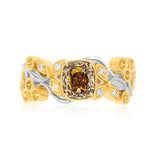 Featuring one modified cushion cut fancy brown orange diamond totalling 1.28 carat, 16 white diamonds totalling 0.15 carat and 16 fancy vivid yellow diamonds totalling 0.28 carat.