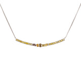 18 karat white or yellow gold necklace featuring 16 fancy yellow diamonds totalling 0.68 carat and 5 assorted natural coloured diamonds totalling approximately 0.81 carat.